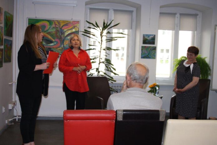 Jak zwykle przyszła liczna reprezentacja Dużego Studia Plastycznego KOK na czele z jego twórcą Bogdanem Wieczorkiem. Było też liczne grono bibliotekarzy, a to dlatego, że Agnieszka Bułatow absolwentka bibliotekoznawstwa, przez 19 lat była wolontariuszką w kłodzkiej bibliotece. Organizacja wystawy była formą podziękowania za zaangażowanie i pracę Agnieszki nad tworzeniem bibliografii regionalnej. Zostało to też podkreślone w liście gratulacyjnym wręczonym na początku spotkania przez Martę Zilbert dyrektora biblioteki. Następnie prowadząca spotkanie Klaudia Lutosławska – Nowak zapoznała zebranych z twórczością poetycką Agnieszki Bułatow, były to wiersze nagrodzone w konkursie poetyckim organizowanym przez Kłodzki Ośrodek Kultury. Był to dobry wstęp do dalszej rozmowy o malarstwie Agnieszki, która od 2013 roku uczestniczy w zajęciach Dużego Studia Plastycznego. Malarka kilkakrotnie podkreślała jak wielką rolę i wpływ miała na jej twórczość możliwość uczestniczenia w zajęciach Studia. Uważa, że jest to miejsce w którym artyści amatorzy znaleźli swój azyl, wzbudzające pozytywne emocje do spotkań, wymiany doświadczeń i nawiązywania kontaktów.